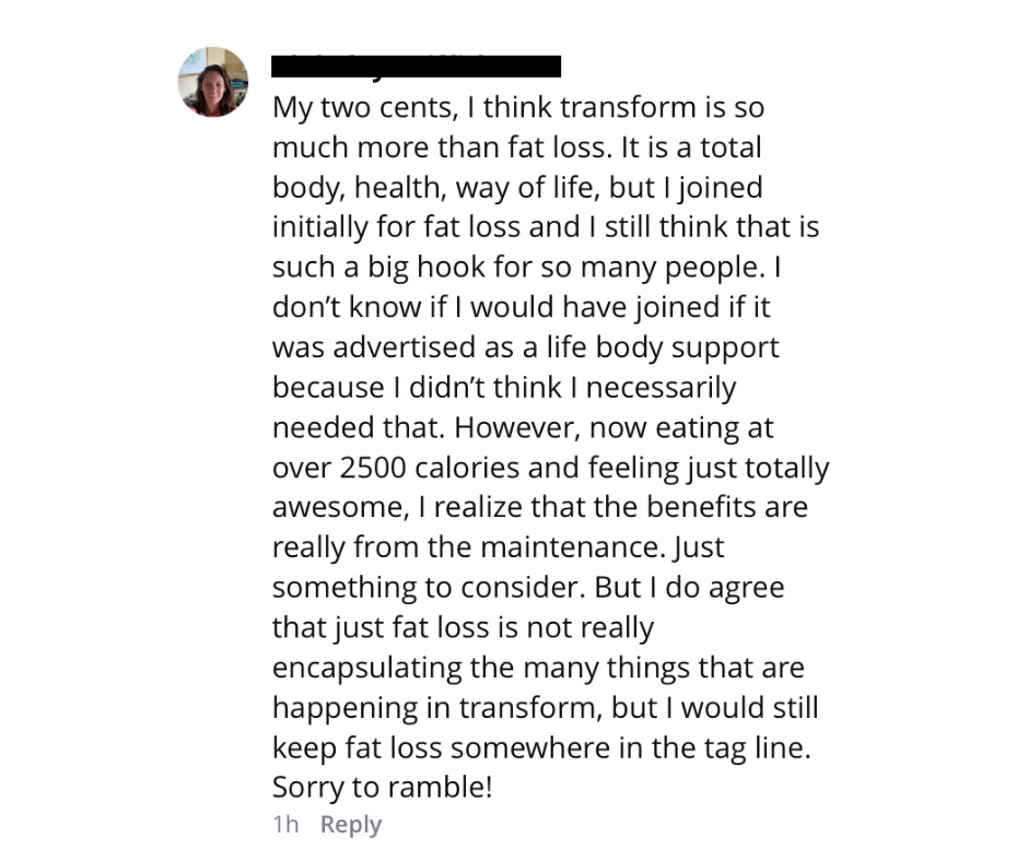 Hear what previous Transform members experienced with Fat Loss Results AND Health Improvements: